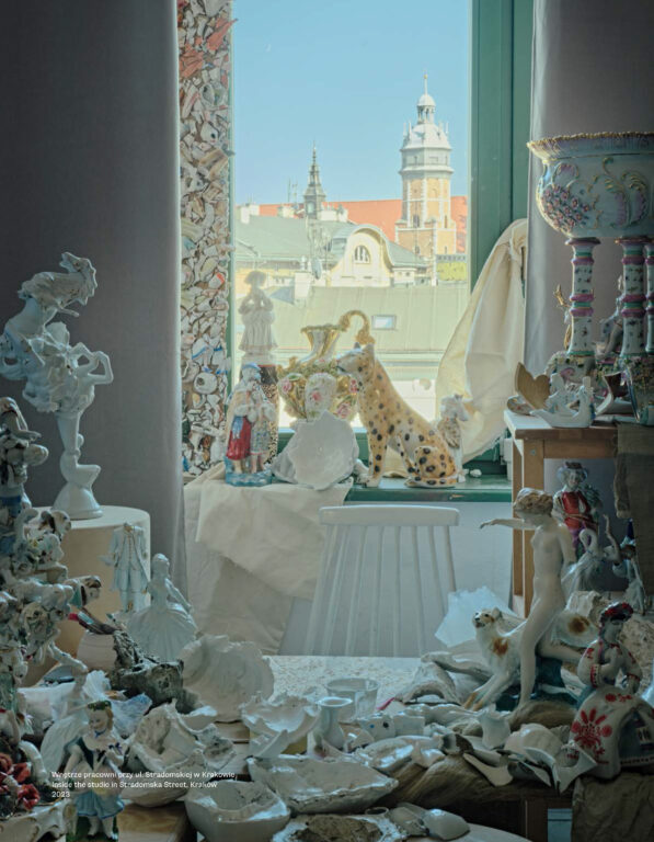 Smoleń tworzy obrazy, obiekty przestrzenne, rzeźby oraz kolaże z porcelany.